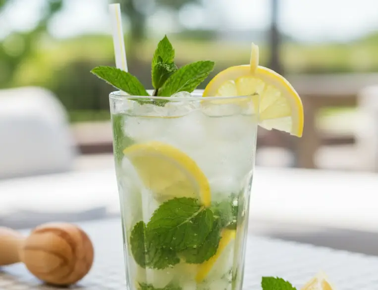 - Garnish: Place a thin slice of lemon and a sprig of fresh mint into the glass for a decorative and aromatic touch.